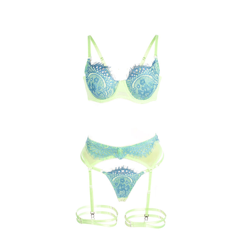 Il set di lingerie con design a giunture in pizzo ciglia verde di SUBBLIME è più di un semplice capo di abbigliamento; è un'espressione di stile, sensualità ed eleganza. Sentiti unica e potente in questo set progettato per celebrare la tua bellezza in ogni dettaglio.